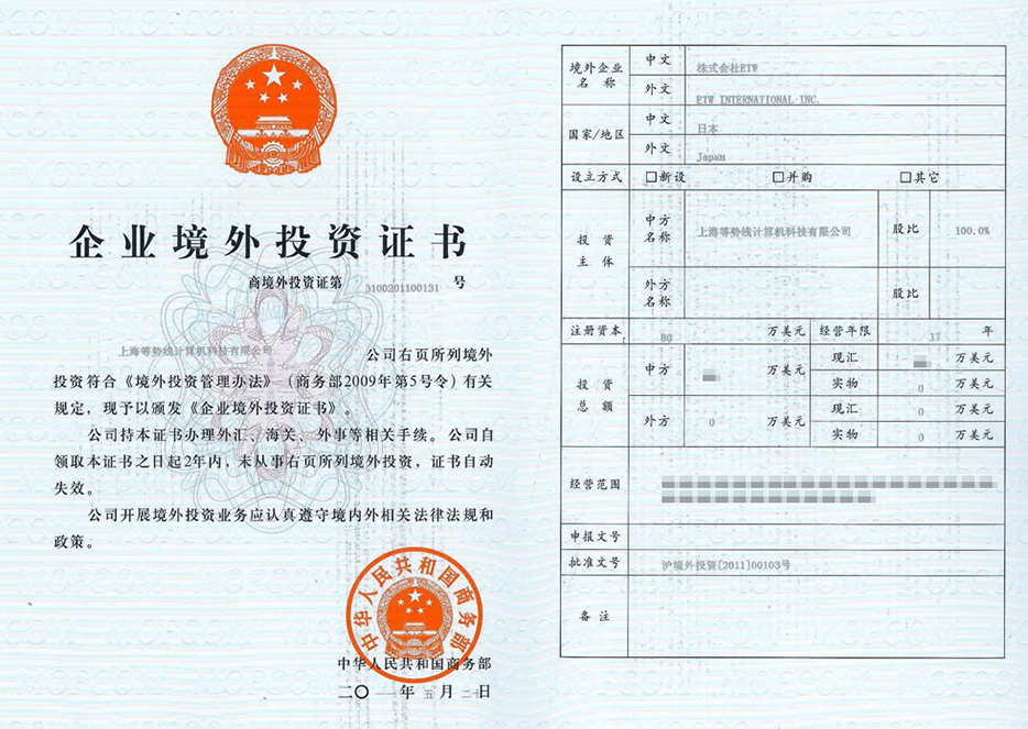 ETW日本-政府批準證書