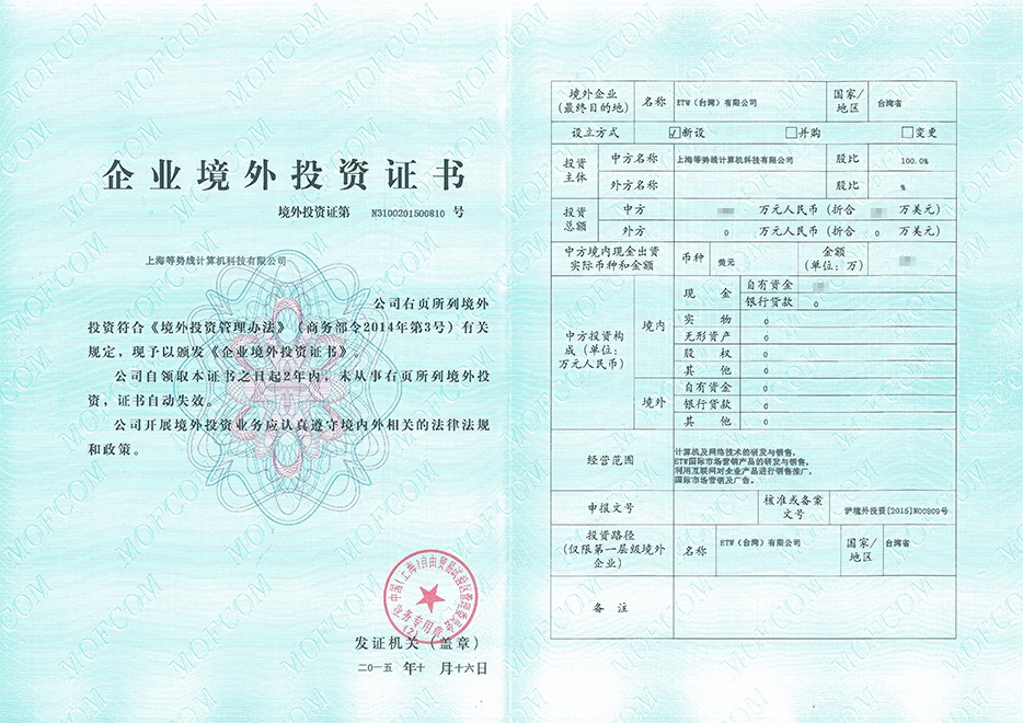 ETW臺灣-政府批準證書