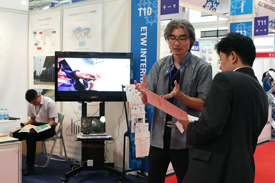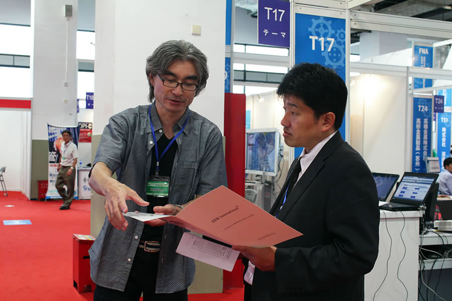 ETW國際日本公司員工,對來華參加“FBC上海2014(亞洲制造業(yè)商談會)”的日本企業(yè)宣傳ETW國際產(chǎn)品和企業(yè)!