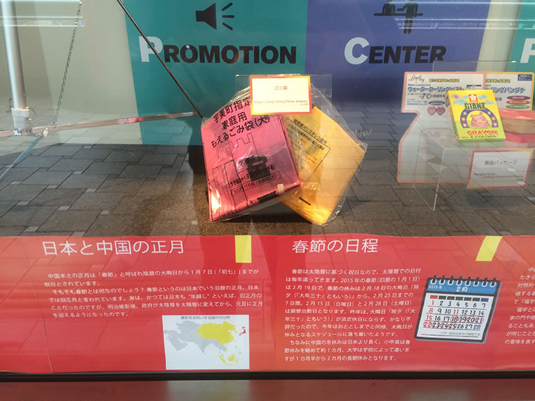 為了慶?!?015ETW國際年”,ETW國際日本館以“舊正月里”為題,選擇了合作企業(yè)中象征吉祥、富貴的紅色和黃色的產(chǎn)品,開展了羊年的首次櫥窗展示活動,向日本人介紹中國產(chǎn)品,傳播中國春節(jié)文化